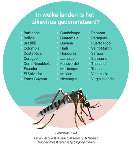 Een voorwaarde is dat aangetoond is dat het zikavirus op de reisbestemming voorkomt. Dat geldt bijvoorbeeld wel voor Curaçao, maar niet voor Aruba of Bonaire. De complete lijst met landen waar zika is vastgesteld staat op de website van het RIVM.
