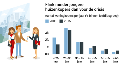 De lage hypotheekrente lokt iedereen naar een koophuis. Na het dieptepunt van 2013 worden er weer huizen verkocht aan mensen in alle leeftijden. Er is echter één leeftijdscategorie die sterk achterblijft: de jongeren van 25 jaar en jonger. Volgens ING zijn er verschillende redenen waarom jonge twintigers  geen huizen kopen. Zonder financiële hulp van bijvoorbeeld ouders is er weinig mogelijk.