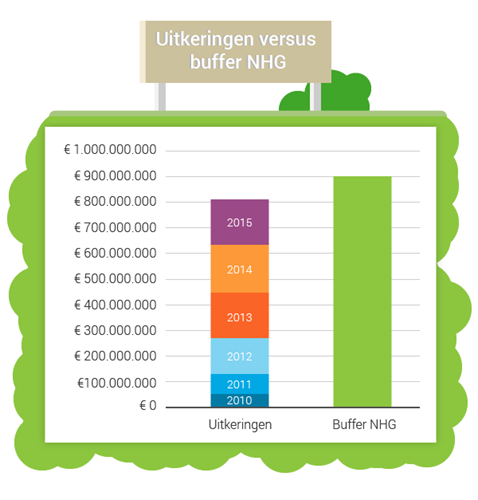 2013 was zogezegd een ‘probleemjaar’ voor NHG. In totaal werd 163 miljoen euro uitgekeerd om restschulden bij huizenbezitters te voorkomen. Per saldo daalde de buffer van waaruit NHG de restschulden moet betalen van 786 miljoen naar 778 miljoen euro . Een daling van 8 miljoen euro, ofwel 1%. Geen al te hoog percentage.