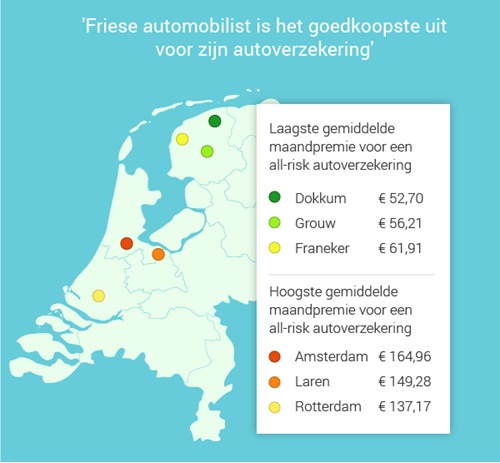 Friesland heeft de goedkoopste autoverzekeringen