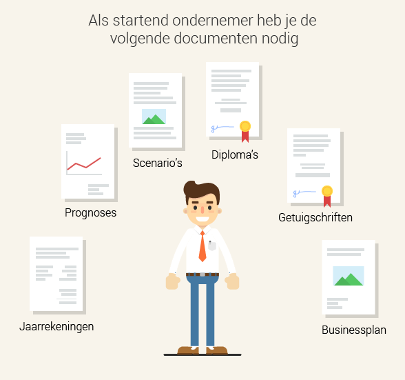 • Verzamel documenten om je capaciteiten mee te bewijzen. Dan kun je denken aan diploma's, getuigschriften en je businessplan.