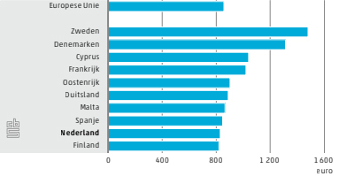 Zweden en Denen geven respectievelijk € 1.480 en €1.313 per persoon uit bij een vakantie over de grens. Fors hoger dan het Europees gemiddelde van €857. Alhoewel de reden niet wordt genoemd, lijkt dit samen te hangen met een relatief hoog netto inkomen in de Scandinavische landen.