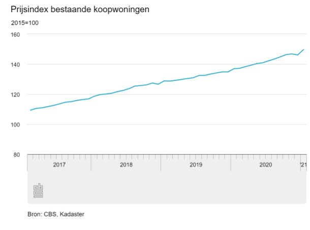 In 2013 bereikten de prijzen van woningen een dieptepunt. Dit dal is inmiddels niet meer in zicht. Ondanks een korte daling van de woningprijs staat inmiddels de hoogste gemiddelde prijs ooit op de borden. Wie afgelopen januari een woning kocht, betaalde zelfs bijna 58 procent meer dan in dezelfde maand in 2013.