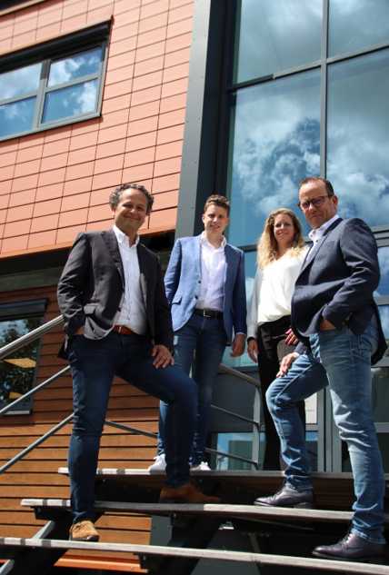 Van links naar rechts: Cees Herrmann, vestigingsmanager en zakelijk adviseur | Christiaan Schalkwijk, kredietadviseur en leasespecialist | Inge van Schaik, zakelijk adviseur | Joost Koren, zakelijk adviseur binnendienst.