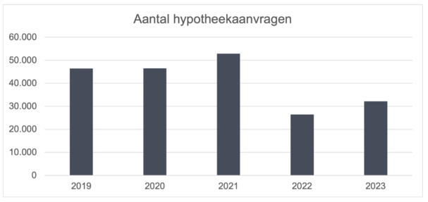 In november vorig jaar kende de huizenmarkt een dieptepunt met slechts 16.001 hypotheekaanvragen voor het kopen van een woning. Redenen waren vooral de sterk schommelende hypotheekrentes en hoge energieprijzen. Vooral in de tweede helft van dit jaar keerde de rust op de energie- en rentemarkt terug. Hierdoor nam ook het vertrouwen onder woningkopers toe. Het resultaat is 30% meer hypotheekaanvragen in november, ten opzichte van dezelfde maand vorig jaar.