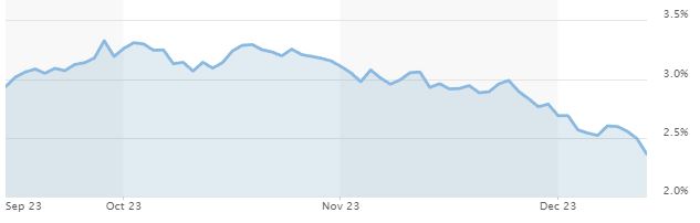 Verloop rente staatsleningen (10 jaar) afgelopen 3 maanden